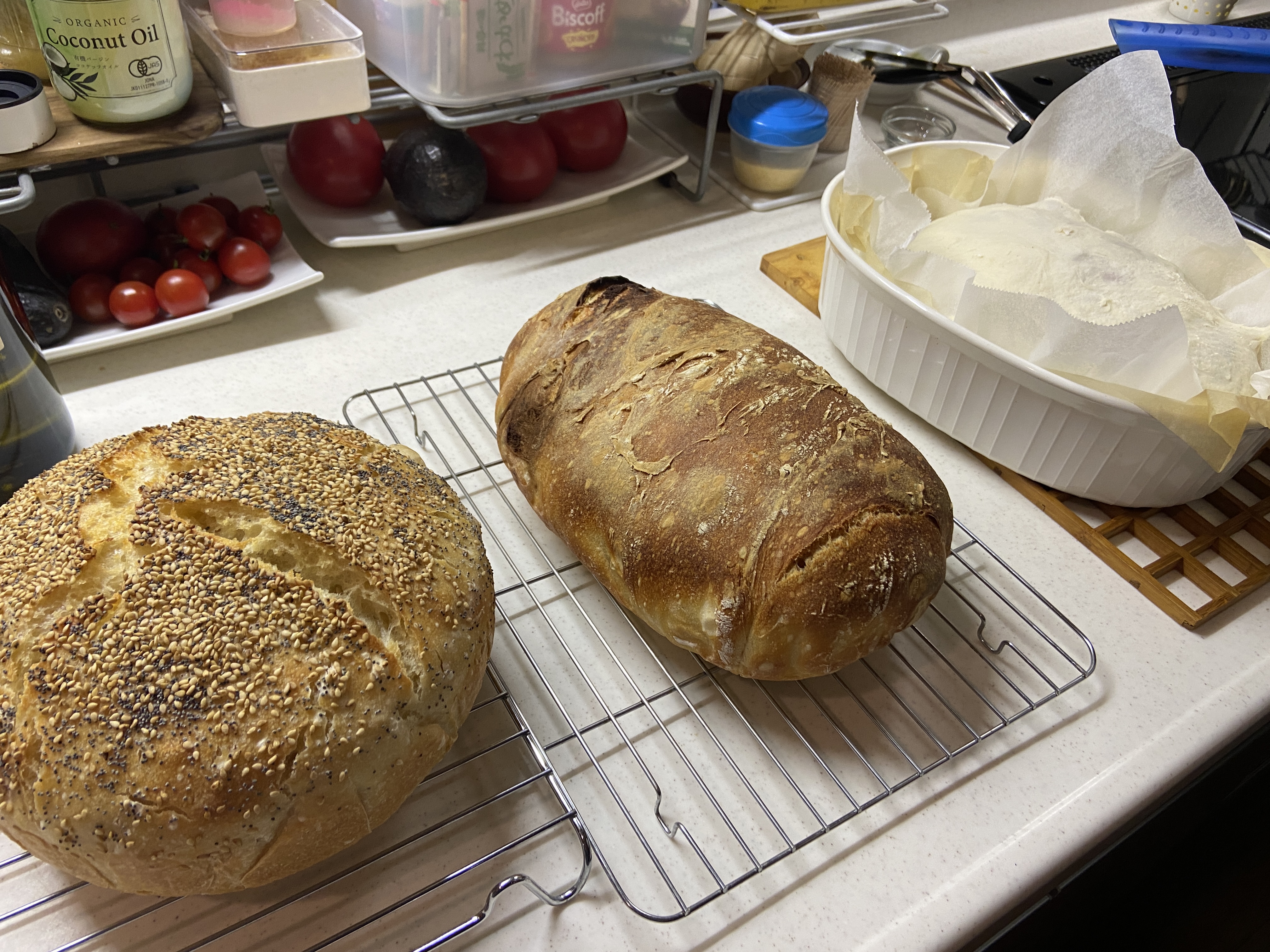 Sam, my daughter, brought that small amount of starter home in a glass jar and ever since then, we’ve been baking sourdough bread about 2-3 times per/month. Unfortunately, we didn’t bake as much during the recent spring holiday but now that we are back at school and working again, the oven is back on and the sourdough is rising.
